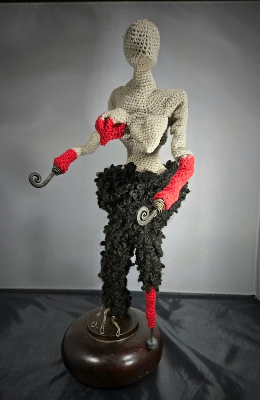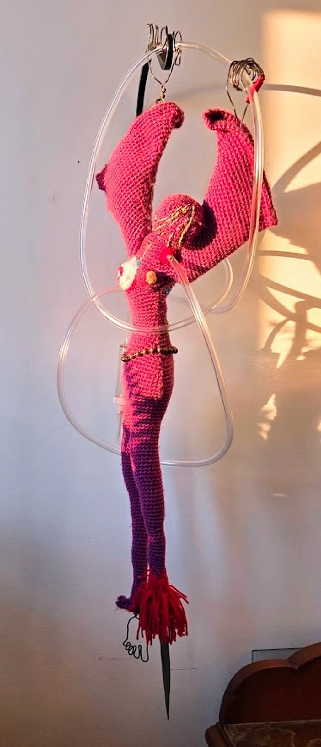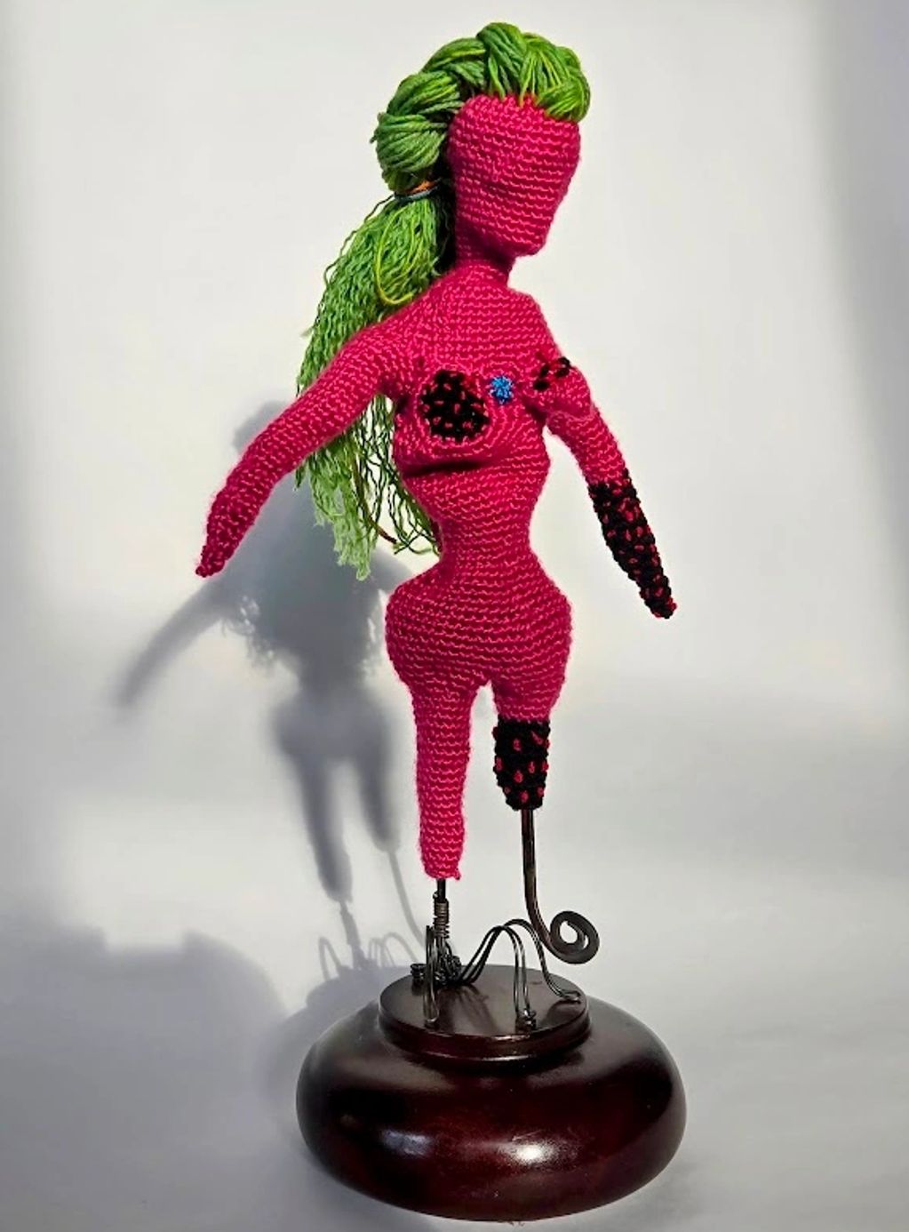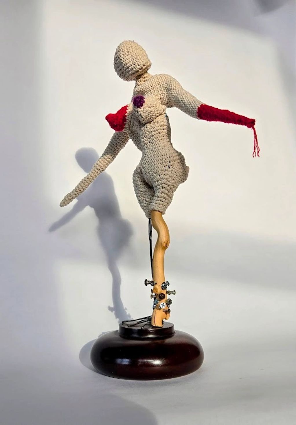 Since Donna’s second journey through breast cancer began in May 2024, she’s turned her creativity to making figurative sculptures she calls Pain Dolls to describe her experiences to herself and others. She says, “I make Pain Dolls because I want to see a visual representation of my inner and outer realities. Somehow, they help me make sense of pain and loss, and they heal me. Seeing them so caught helps me feel compassion for myself and for anyone who endures challenges, medical and otherwise. My Pain Dolls help me to accept and understand. Their story is my story.”