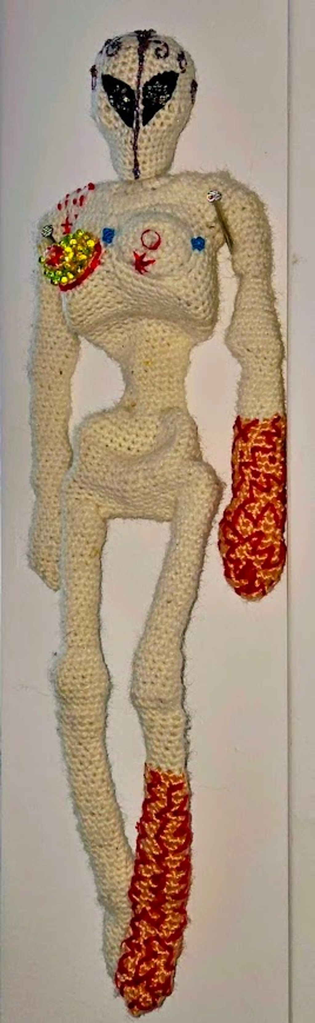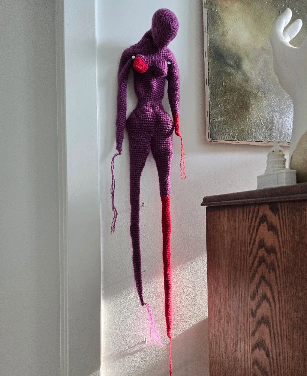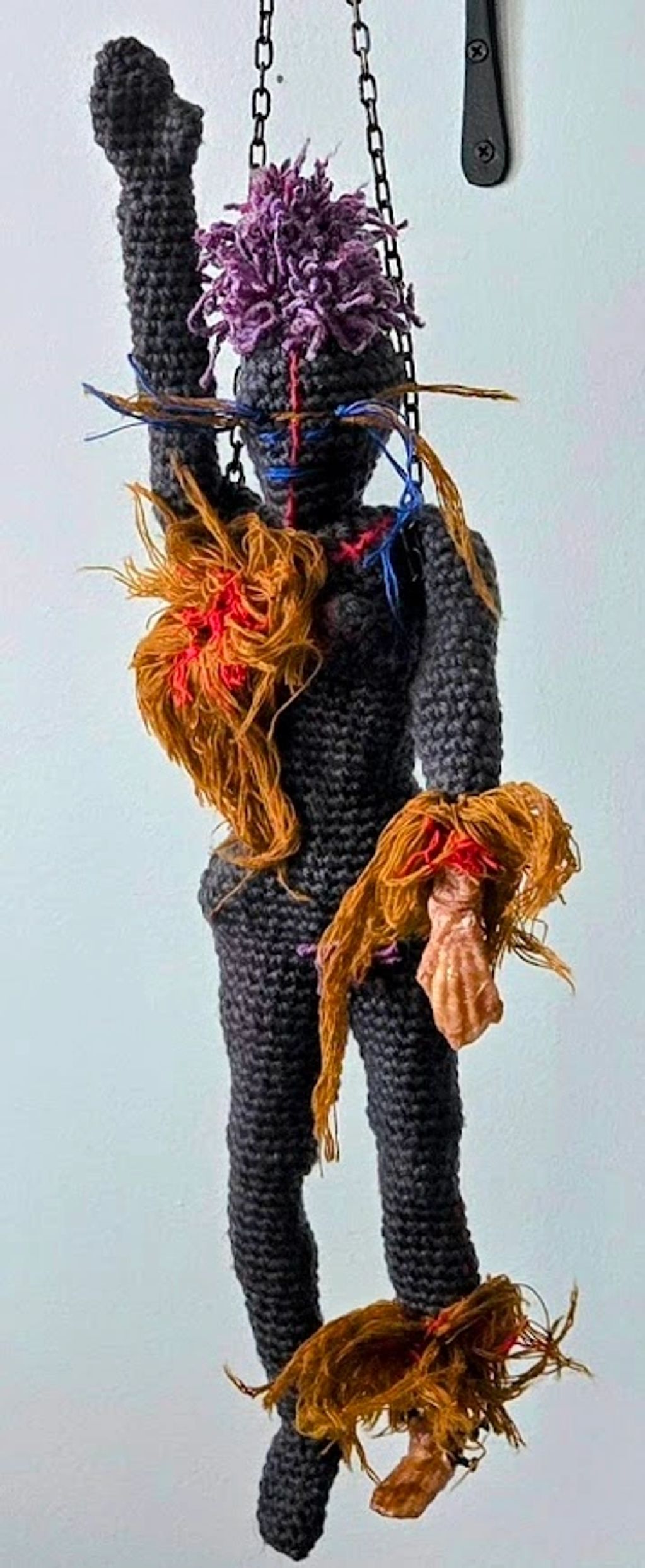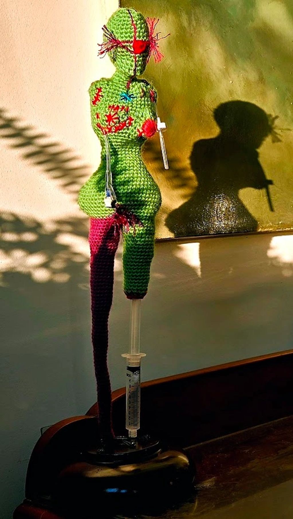 Since Donna’s second journey through breast cancer began in May 2024, she’s turned her creativity to making figurative sculptures she calls Pain Dolls to describe her experiences to herself and others. She says, “I make Pain Dolls because I want to see a visual representation of my inner and outer realities. Somehow, they help me make sense of pain and loss, and they heal me. Seeing them so caught helps me feel compassion for myself and for anyone who endures challenges, medical and otherwise. My Pain Dolls help me to accept and understand. Their story is my story.”